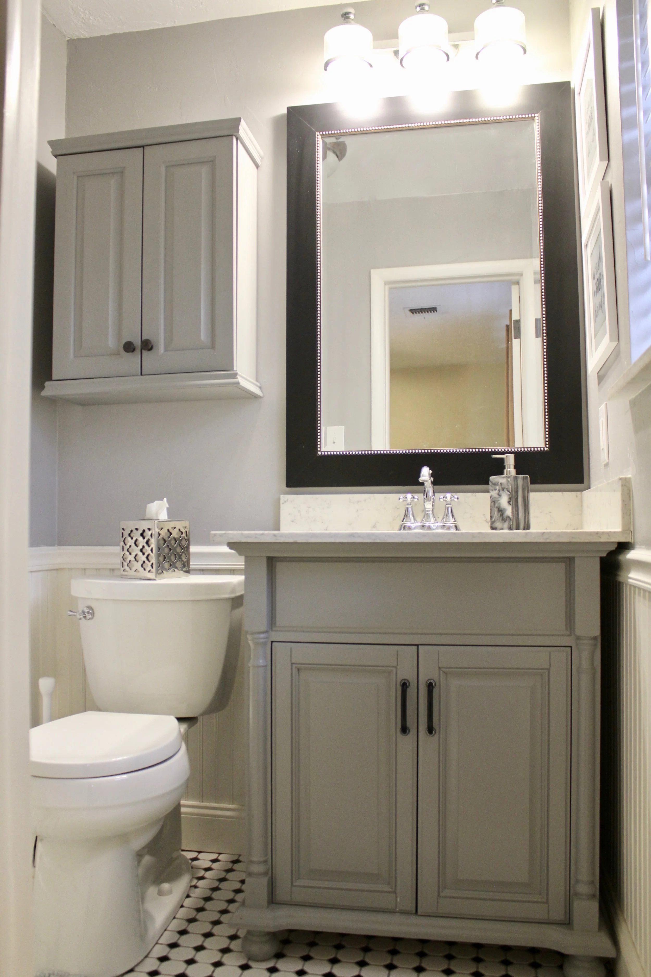 This charming fixer upper was renovated top to bottom. We installed beautiful hardwood floors throughout and opened up walls to create an expansive feel in a small starter home. The master bathroom was remodeled with subway tile, raincan shower, and quartz vanity top. The newly married couple wanted to make this first home a place where friends could come visit and lose track of time. Focusing mainly on the living areas, we mixed bold patterns and classic prints, often reupholstering and repurposing family heirlooms. This helped to make the home feel youthful on a young couple's budget.